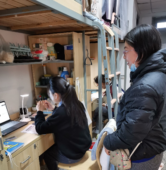 走访过程中,学院领导和辅导员老师们查看同学们线上学习情况,并与学生进行了交流,提醒每一位同学都要自律,提前调整好学习状态,不因线上课程而懈怠。院领导和老师们还耐心解答同学们线上学习和疫情防控中遇到的问题和疑惑,并进行必要的心理疏导。对疫情防控,要求同学们必须加强宿舍的整洁和卫生工作,进一步强化寝室通风、寝室安全等;提醒所有同学要注意勤洗手,在公共场合正确佩戴口罩、保持安全距离,做好疫情防控常态化下的自我管理和个人防护;建议同学们平时注意保暖、加强体育锻炼、塑造强健体魄,若有不适及时上报。同学们对院领导和老师们的关心表示了衷心感谢,决心努力学习、提高技能,将来更好地服务社会、服务国家。