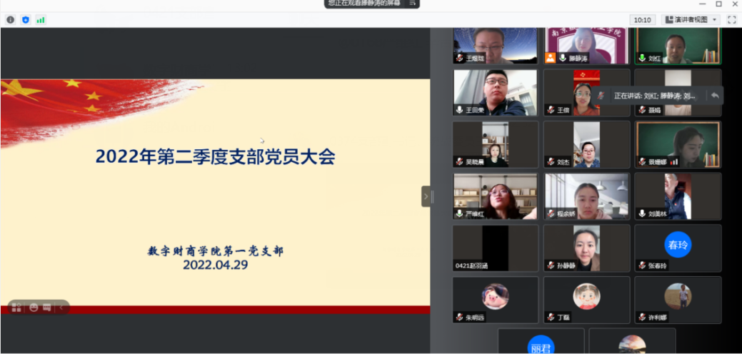 “我看一阵向晚的春风,悄悄揉过丰润的青草……”2022年4月29日中午12:30,江南平台_江南(中国)党总支第一党支部20位党员教师齐聚在腾讯会议,集体欣赏、朗读经典美文《我看》。