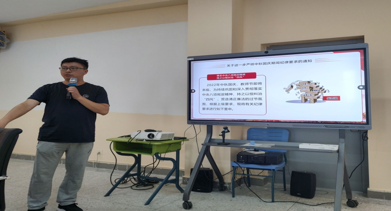 刘晓艳副书记首先传达了学校《关于进一步严明中秋国庆期间纪律要求的通知》的精神,结合学校《2022年第七期教职工政治理论学习安排》的要求,在全院教职工前期开展自主学习的基础上,对其中纪检专题的内容进行集中学习,希望所有教职工认真学习、贯彻落实。