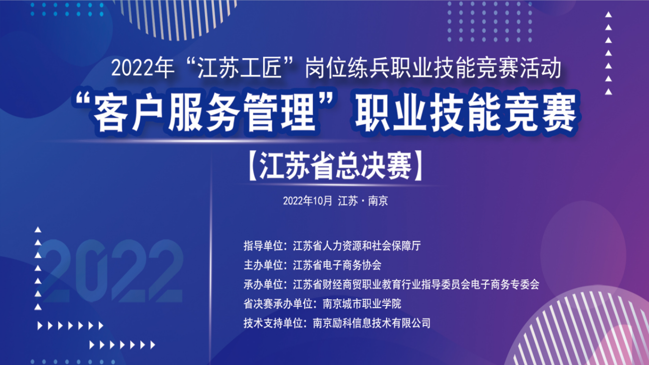 根据《江苏省人力资源社会保障厅关于组织开展“江苏工匠”岗位练兵职业技能竞赛活动的通知》(苏人社发〔2022〕65号)要求,经报省人社厅审核备案,由江苏省电子商务协会负责,委托我校江南平台_江南(中国)承办了2022年“江苏工匠”岗位练兵职业技能竞赛活动“客户服务管理”职业技能竞赛江苏省总决赛。