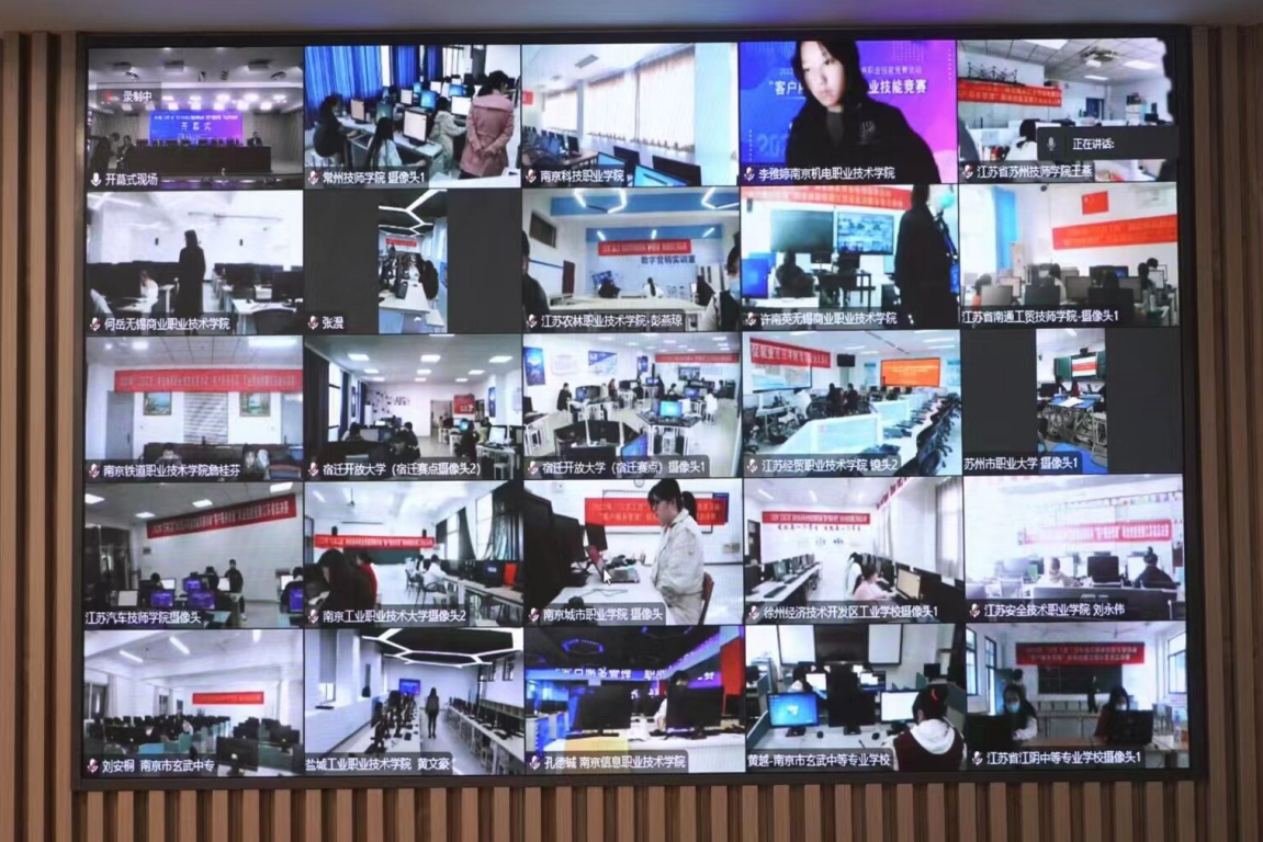 根据南京市疫情防控要求,经组委会研究,参照部分市级选拔赛作法,采取线上方式进行。专家组、裁判组、仲裁组等近20名大赛执裁及工作人员,在我校新街口校区集中进行线下执裁工作。全省106名决赛选手在所在单位机房参赛。运用现场全景摄像实时连入竞赛腾讯会议画面等技术手段,现场裁判通过实时监控现场参赛画面、评分裁判后台实时评分等执裁方式,保证竞赛的有效性,全面实现“公平、公正、公开”的竞赛原则。赛项举办的同时,召开了线上“电子商务发展及客户服务”学术研讨会。当天下午比赛结束后举行了闭幕式,我校被竞赛主办单位江苏省电子商务协会授予“优秀承办单位”。