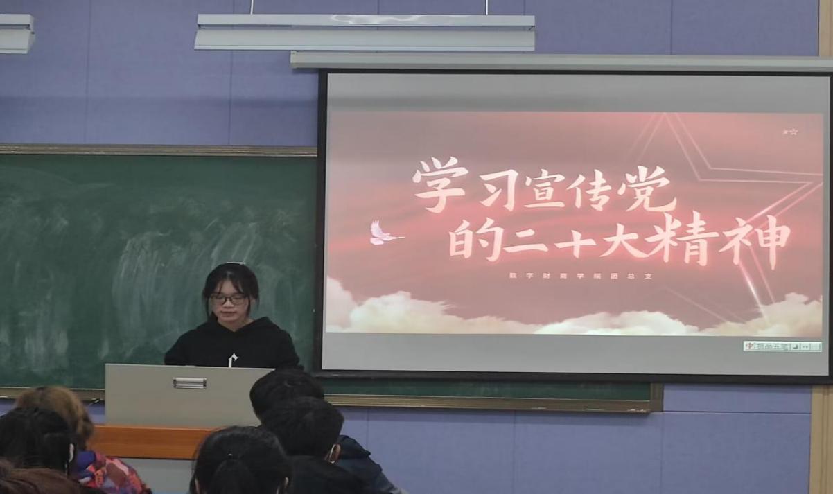 为贯彻学习二十大精神,江南平台_江南(中国)团总支于10月31日17:30在厚生楼319开展了“学习宣传党的二十大精神”主题团日活动。本次团日活动由江南平台_江南(中国)团总支组织委员梁馨月组织,2021级现代物流管理2班团支书肖湘宏娟、2021级大数据与财务管理1班付超负责主持,2022级各班班长、团支书参加会议。