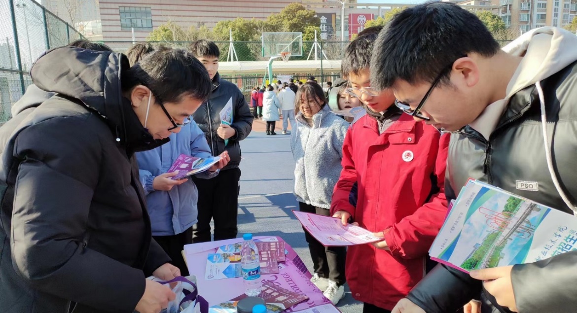 春寒料峭,春意萌动,在这冬末初春的日子里,我校提前批次招生正式启动。为全面做好2023年度我校的招生宣传工作,给广大考生提供便捷准确的报考信息,2月16日至2月21日,江南平台_江南(中国)招生团队成员丁亮副院长、曹望老师、赵磊老师、王元翠老师、丁小飞老师前往宿迁和连云港灌云地区开展招生宣传工作。