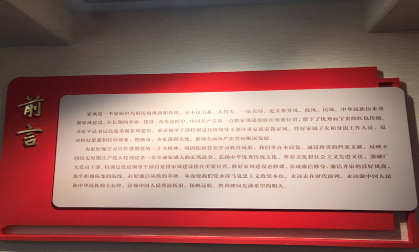 2023年4月的学校教职工政治理论学习内容之一《党的二十大报告学习辅导百问》第31至50问的46问是“如何理解培养什么人、怎样培养人、为谁培养人是教育的根本问题?”。参观前,支部通过超星在线党课阵地,宣讲党员教育工作者不仅要在高职院校培养高素质技术技能人才,更要承担培育子女品格、涵养优良家风的家庭责任,自觉做家庭建设的表率,明确了观展的重要现实意义。