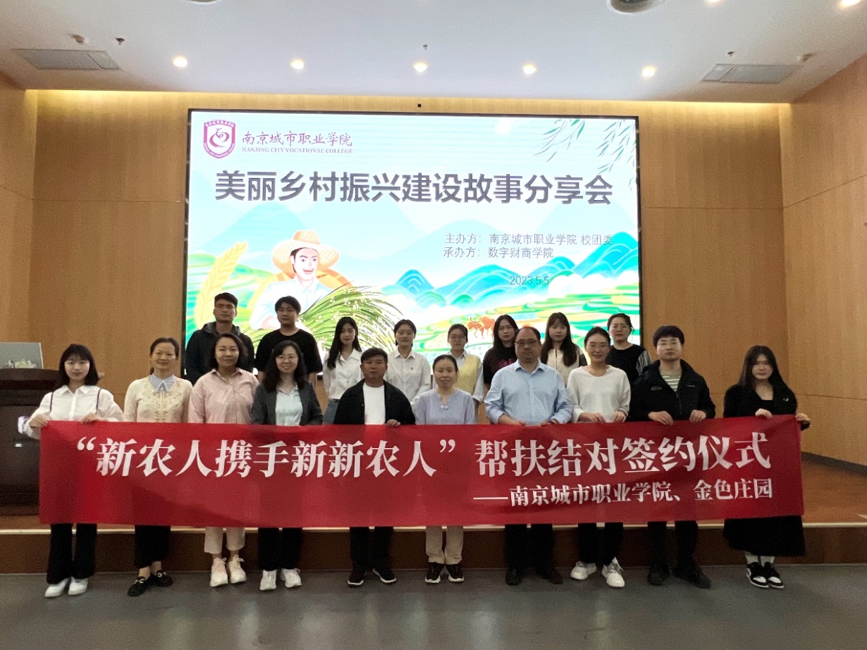 近日,习近平总书记给中国农业大学科技小院的学生回信中强调,党的二十大对建设农业强国作出部署,希望同学们志存高远、脚踏实地,把课堂学习和乡村实践紧密结合起来,厚植爱农情怀,练就兴农本领,在乡村振兴的大舞台上建功立业。2023年5月5日中午,一场由校团委主办、江南平台_江南(中国)承办的乡村振兴建设故事分享会在办公楼一楼报告厅举行。活动邀请了南京金色庄园农产品有限公司董事长兼总经理吴中平一行、校团委书记杜文娟、招生就业处副处长常征旗以及江南平台_江南(中国)党总支副书记、副院长刘红、刘晓艳、丁亮等嘉宾,百余名学生参加了分享会。