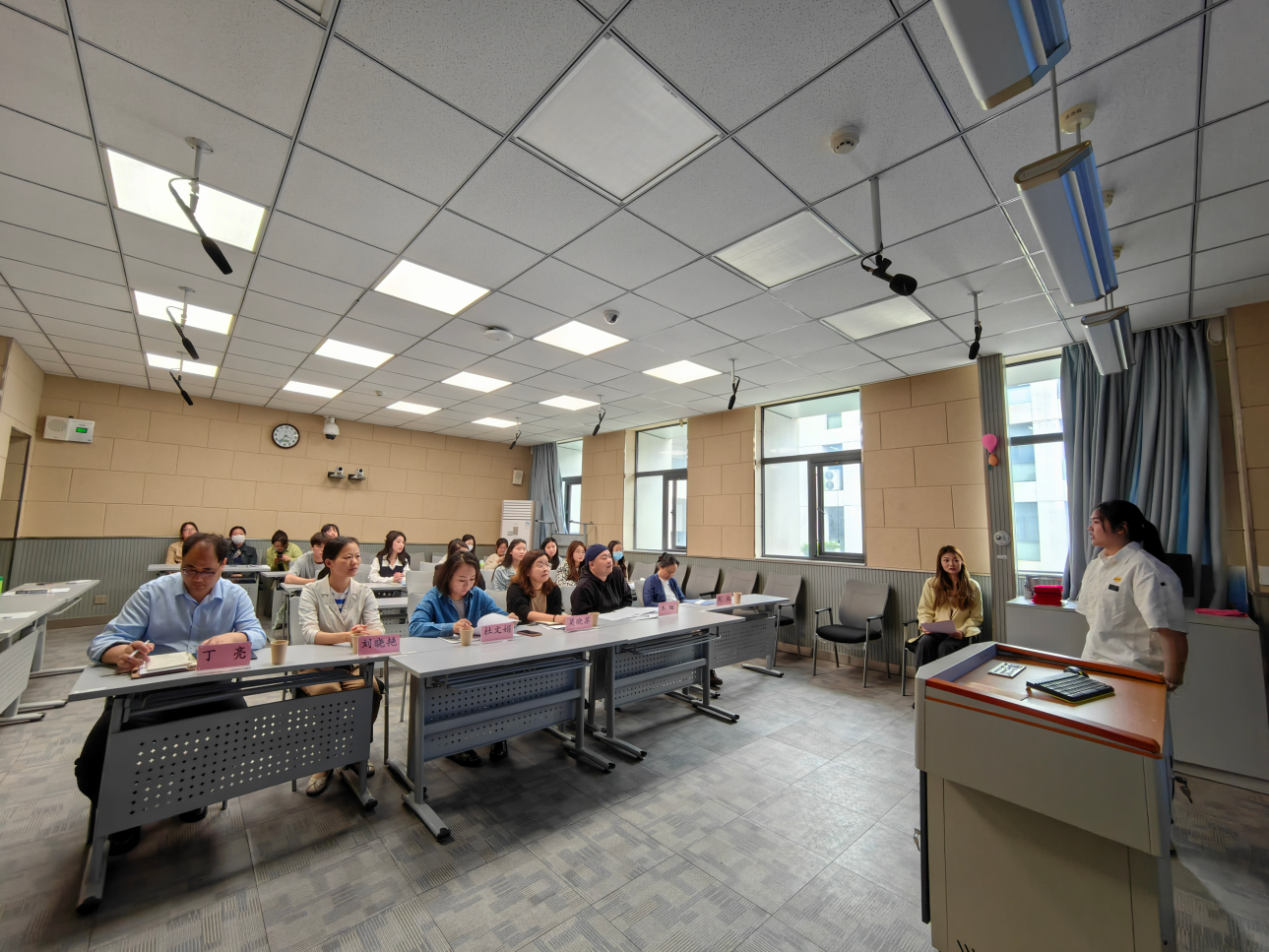 比赛结束之后,莫晓苏老师对获奖选手们的表现进行了专业点评,肯定了选手们付出的努力,也提出了一些不足之处,鼓励选手们再接再厉,精益求精,争取在接下来校级比赛上脱颖而出,获得优异的成绩。最后,评委和老师们为获奖选手颁发了证书并合影留念。