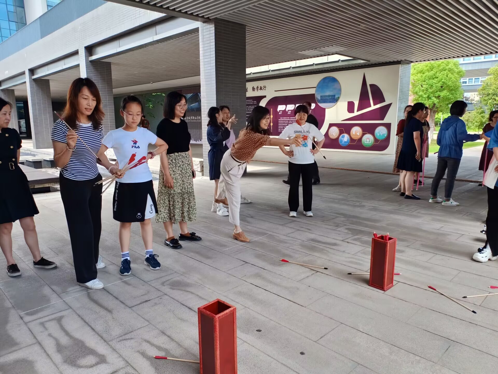 趣味运动会以丰富多样的项目为教工们带来了一次难忘的运动体验。其中包括不倒森林、拔河比赛、摸石过河、投壶、飞镖和弓箭射击等,这些项目不仅考验了教工们的体力和协作能力,更展现了他们的风采和活力。每个项目都充满了欢声笑语,赛场上的紧张气氛也被欢快的笑声所填满。尤其拔河比赛展现了队员之间的合作与默契,每个队员都全力以赴,为自己的团队争取荣誉。