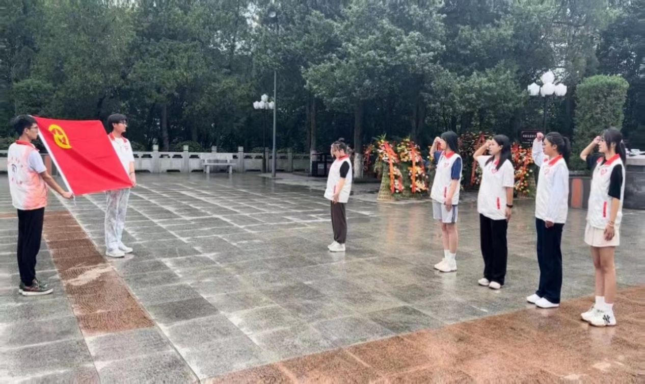 第二站,7月4日上午,团队前往革命烈士陵园,悼念烈士。献花篮、整理缎带、三鞠躬一系列流程中,大家脚步沉重,心亦沉重,庄严肃穆。于同学们而言,那些为革命事业贡献出宝贵生命的英雄烈士,只要我们不曾忘记,他们便不曾离开。随后团队重温入团誓词。“我志愿加入中国共产主义青年团,坚决拥护中国共产党的领导……”嘹亮的声音在广场上空响起,展现了当代青年对于新时代赋予其责任与担当的坚定与执着。