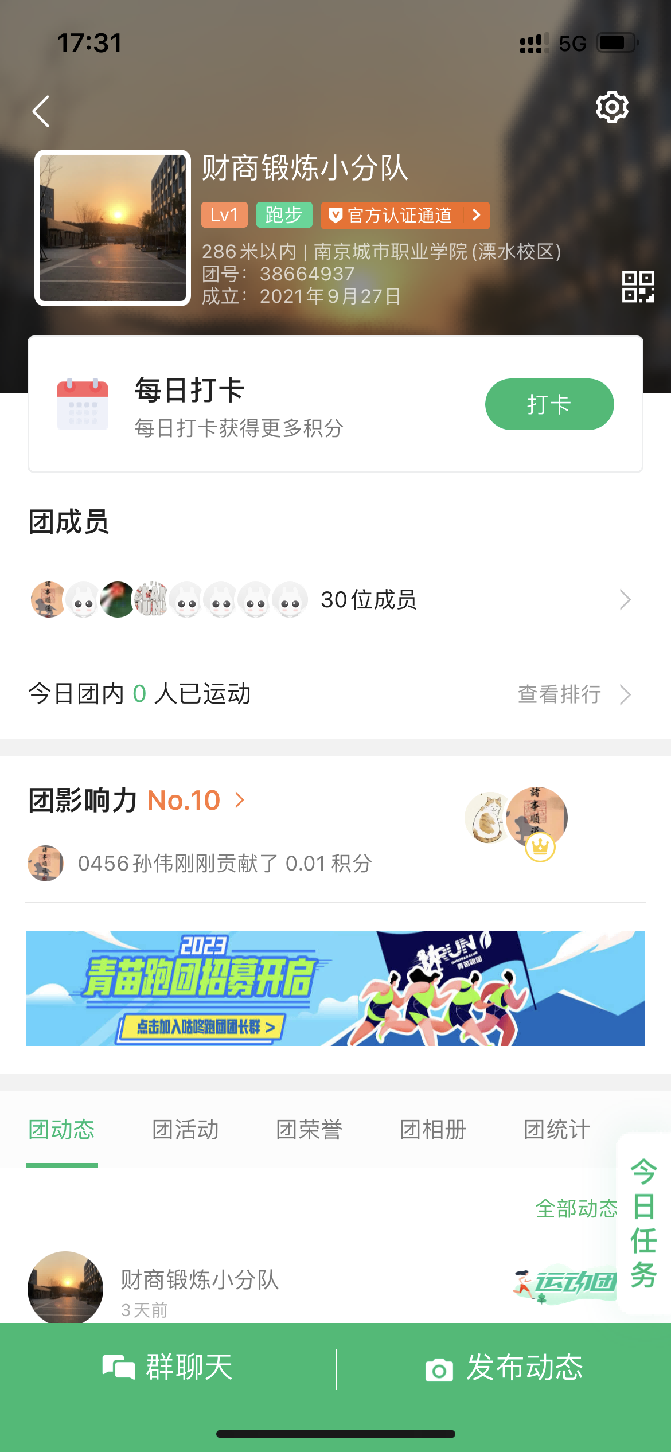 为进一步推进全民健身运动的开展,提高我院教职工身体素质,展现团结向上、砥砺奋进新面貌,促进和谐校园文化建设,江南平台_江南(中国)分工会通过咕咚APP开展了“强身健体,幸福你我”健康打卡活动。