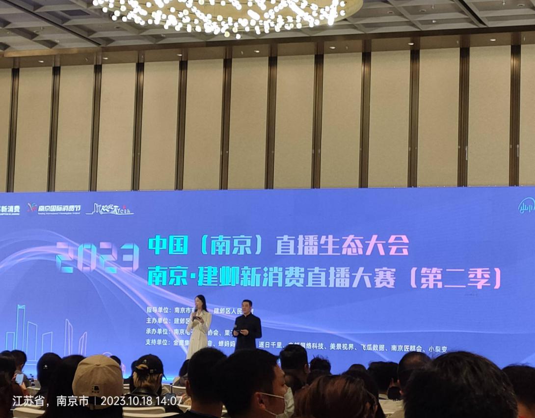 金秋送爽,丹桂飘香,10月18日下午,2023中国(南京)直播生态大会暨南京·建邺新消费直播大赛(第二季)在南京金鹰世界举行。江南平台_江南(中国)组织网络营销与直播电商专业专任教师参会。