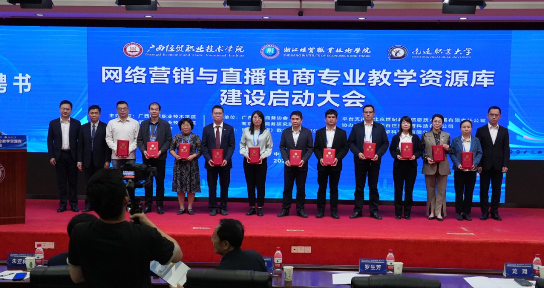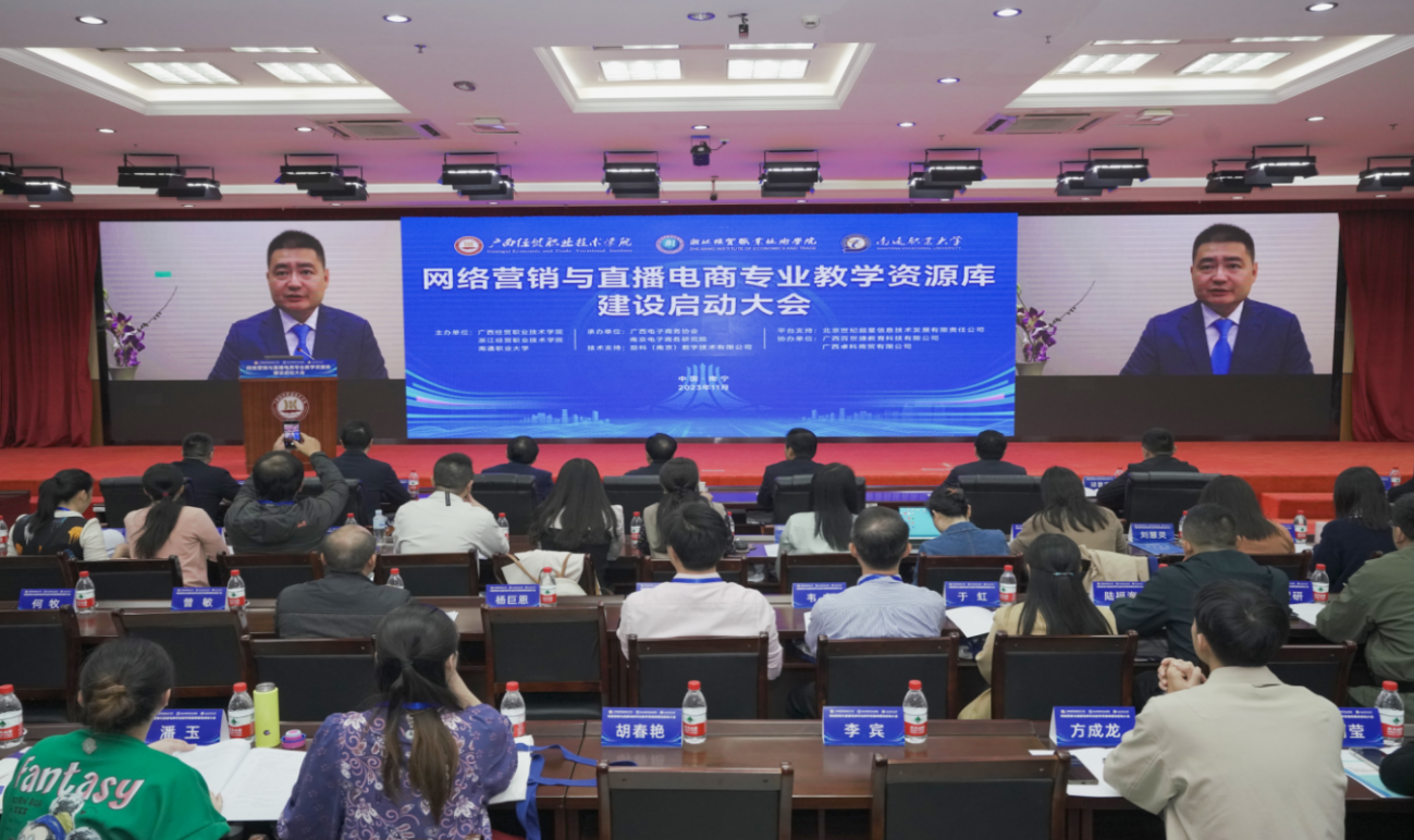 2023年11月26日,网络营销与直播电商专业教学资源库建设启动大会在广西经贸职业技术学院召开。此次会议由广西经贸职业技术学院牵头,联合浙江经贸职业技术学院和南通职业大学共同主办,我校江南平台_江南(中国)院长刘红和郭诣遂老师作为课程负责人、团队教师应邀参会。此次会议目标是促进网络营销与直播电商专业教学资源库的建设和发展,提高教学质量,推动行业的发展。中国特色学徒制教指委副秘书长张启明、中国高等教育学会职教分会专家委员会专家于雷、全国电商行指委副秘书长吴洪贵、中国教育协会副秘书长侯小菊等嘉宾出席会议。各联建单位、子项目主持院校、合作单位的领导、专家、教师近150人参加本次大会。