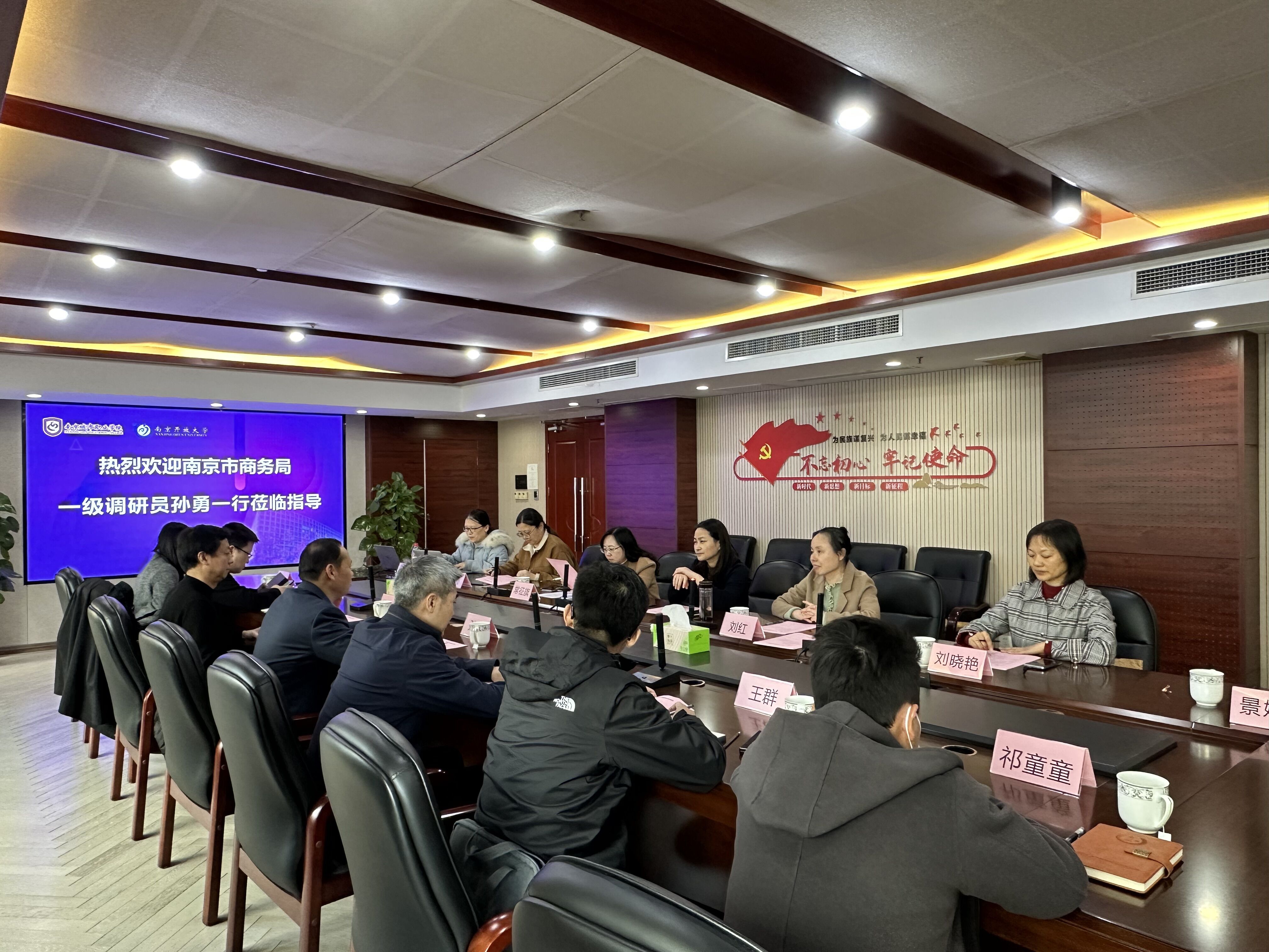 12月6日下午,南京市商务局一级调研员孙勇一行就双百培育项目来我校新街口校区调研交流。校党委委员、副校长张煌,江南平台_江南(中国)书记、院长刘红,招生与就业处副处长常征旗,江南平台_江南(中国)副书记、副院长刘晓艳和相关老师出席会议。