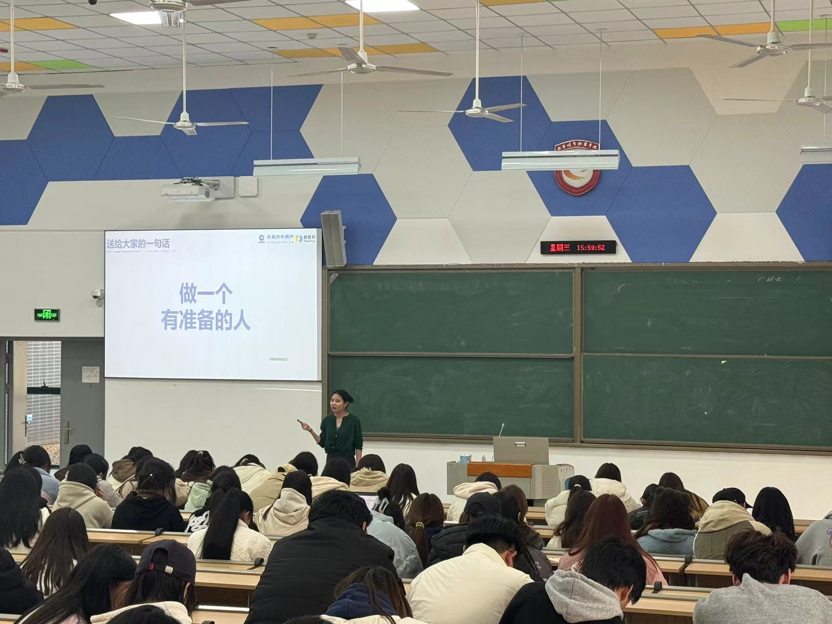 其次,她分享自己在校期间是如何通过参加各类实践活动、社团组织和竞赛等途径,提升自己的综合素质和能力的。她强调在求职过程中,综合素质和能力的重要性,鼓励同学们要抓住机会,全面提升自己。同时,她分享了自己在面试过程中的心得体会,教同学们如何应对各种面试问题,展示自己的实力。她还强调面试前的心理准备,帮助同学们建立自信,迎接挑战。