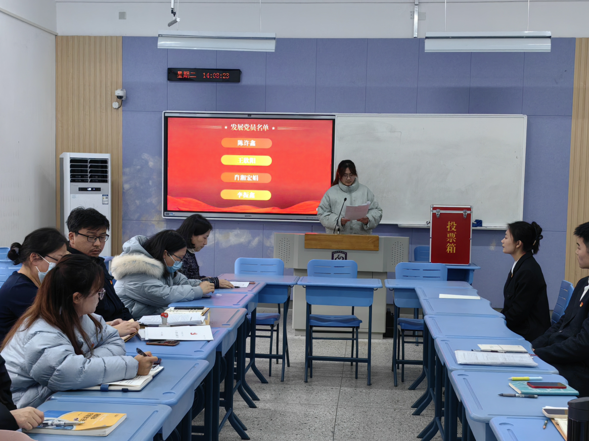 为切实做好党员发展工作,经江南平台_江南(中国)党总支批准,2023年12月12日中午1:30在厚生楼217教室,江南平台_江南(中国)党总支第一党支部召开支部党员大会,讨论预备党员转正、预备党员和入党积极分子接收等事宜,支部16名正式党员参加会议,会议由支部书记滕静涛主持。