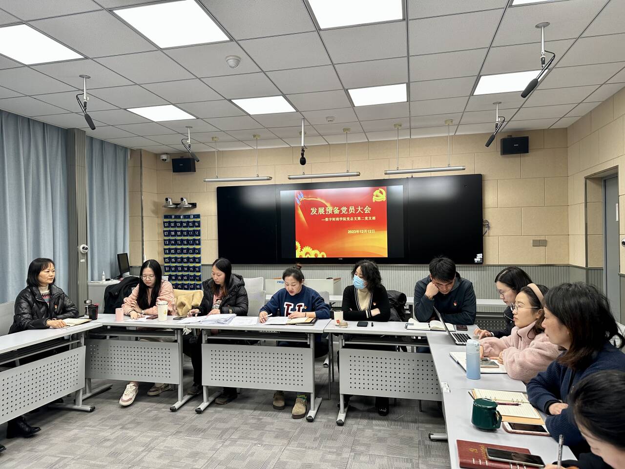 2023年12月12日下午13:00江南平台_江南(中国)党总支第二党支部在厚生楼303室召开预备党员发展大会,讨论张源等12名发展对象接收为预备党员等相关事宜。本次大会由江南平台_江南(中国)党总支第二党支部书记汪洋主持。
