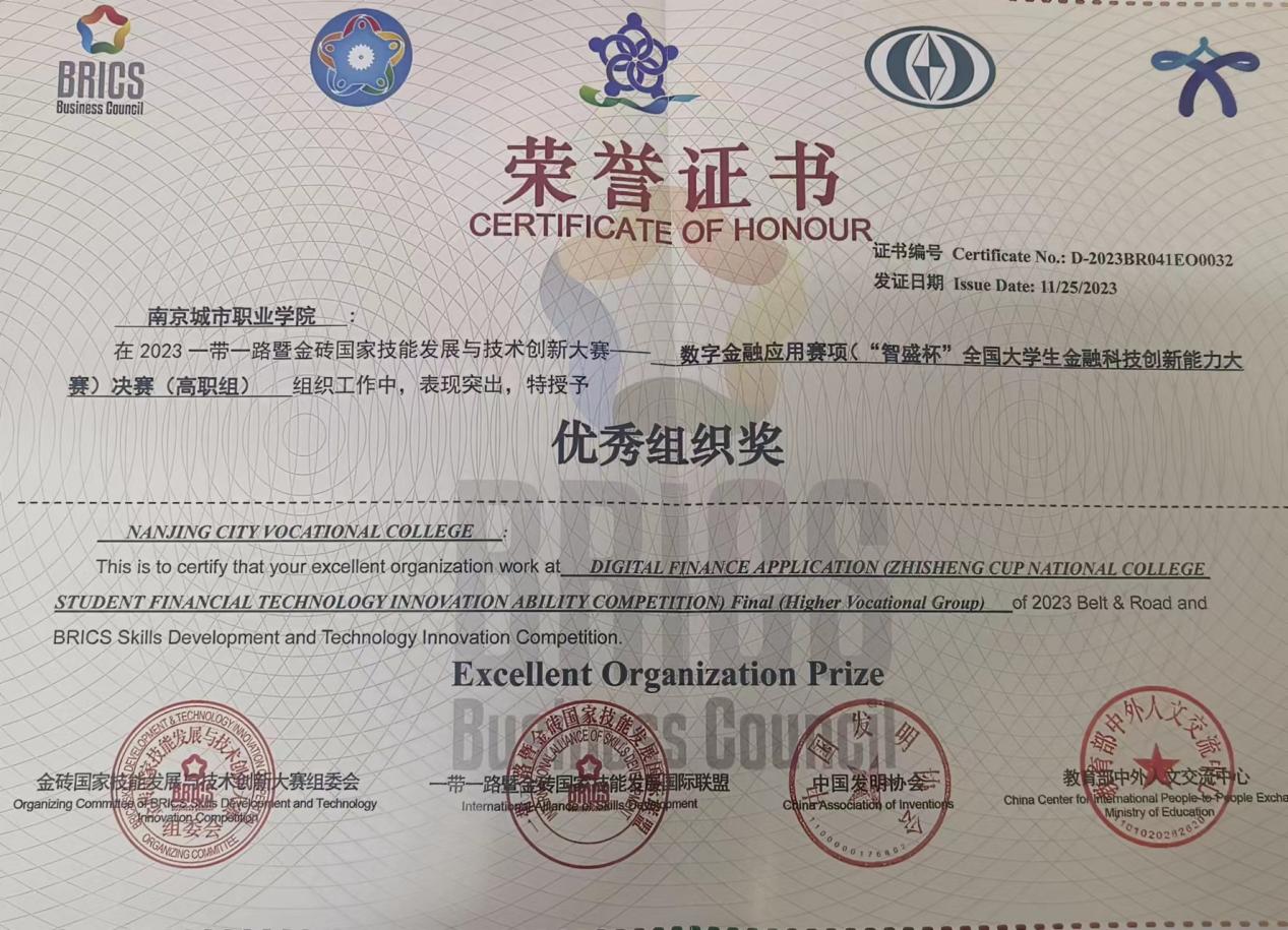 2023年11月25日,2023一带一路暨金砖国家技能发展与技术创新大赛数字应用赛项全国总决赛圆满落幕。我校江南平台_江南(中国)学生李奕琦、夏琦晶、黄缪鹏、张杰组成的代表队入围全国比赛队伍前20%,最终获得了高职组国家二等奖,江苏省高职院校排名第一的优秀成绩。学校因组织赛项表现突出,获得了优秀组织奖。