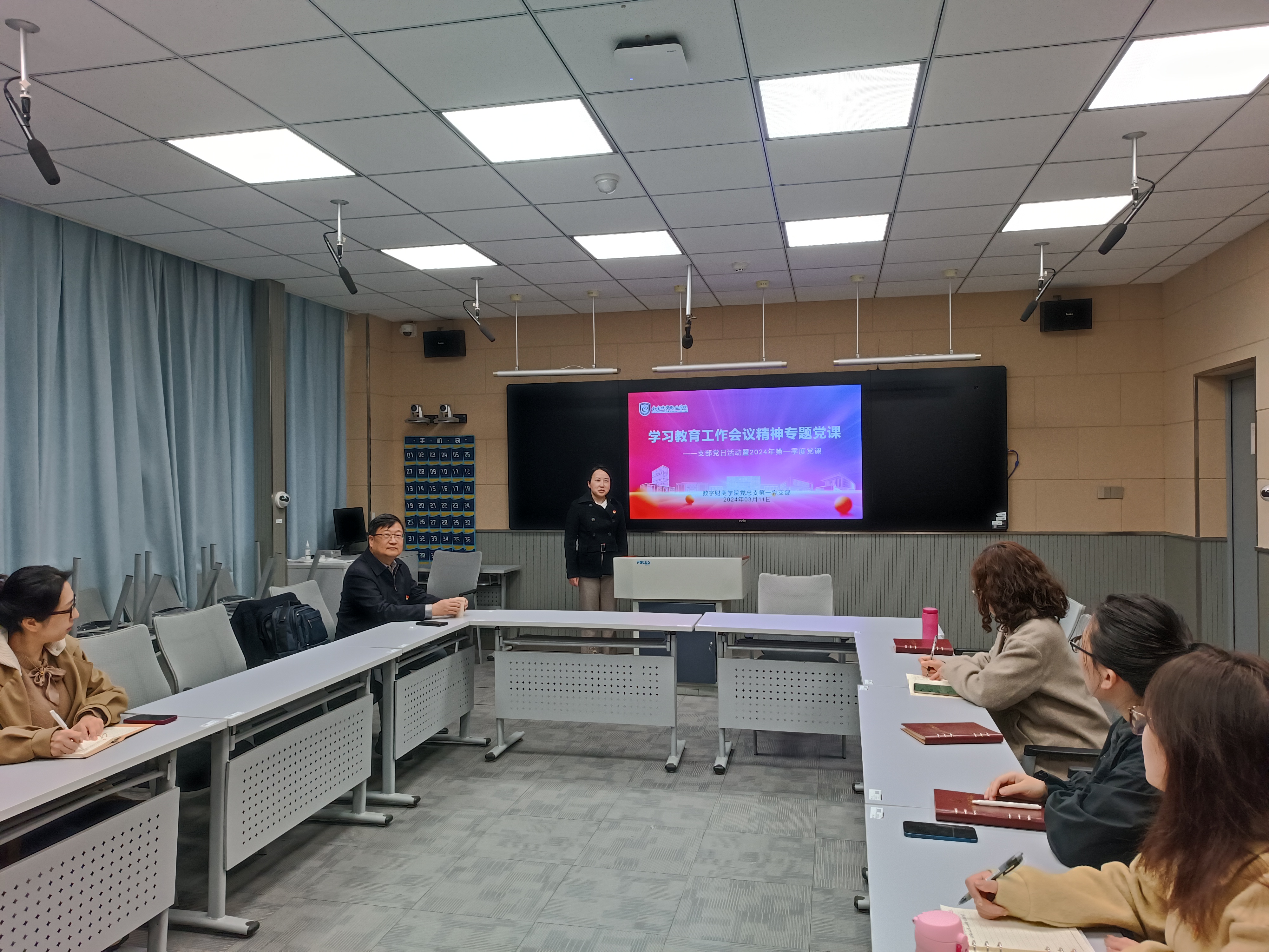 为把学习贯彻习近平新时代中国特色社会主义思想不断引向深入,结合学校教职工政治理论学习要求,3月11日下午,江南平台_江南(中国)党总支第一党支部在厚生楼303教室开展以“2024年教育工作会议精神解读”为主题的第一季度专题党课学习活动,活动由支部书记滕静涛主持,全体支部党员教师和学生按时参加本次活动,活动分为布置2024年支部工作计划、陈社育教授讲授专题党课和交流总结三个环节。