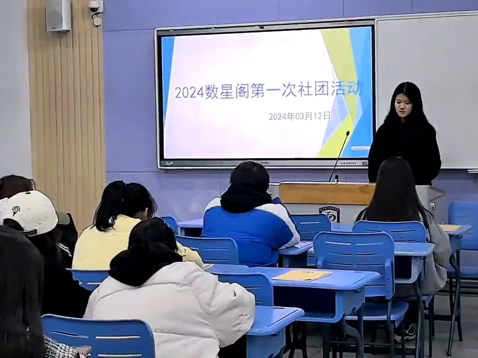 第二环节:由郭冉冉、吴洋洋给社团成员分发社团材料,并由郭冉冉讲解了材料的用处与意义。数星阁作为学术科技类社团,社团采购学习用品的出发点就是希望能够提供学习材料给社团成员。社团为社团成员们提供了益智动脑的游戏,基础学习用品,并欢迎有需求的同学向社团负责人和负责老师寻求学习生活上的帮助。