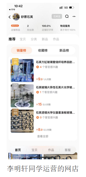 我校高度重视大学生创新创业人才培养模式探索,并摸索出“创新创业课+生产性课程+创业孵化辅导”的校企协同创业育人模式,成果丰硕。通过该创业项目,淘天集团在我校共孵化369名同学参与淘宝开店创业,截至2024年4月15日,店铺月销售额过万元店铺共5个,其中我校22级商务管理专业李明轩同学店铺水晶实验器皿月销售额超5万元。