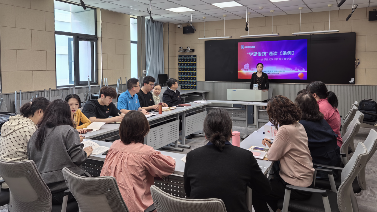 根据学校党纪学习教育要求,5月7日下午,江南平台_江南(中国)党总支第一党支部全体党员同志在厚生楼303教室开展“学思悟践”通读《条例》主题党日活动。活动由支部书记滕静涛主持,全体支部党员教师和学生按时参加本次活动,活动分为滕静涛书记主讲党纪学习教育专题党课,布置支部党纪学习教育计划、学习交流和学习检测四个环节。