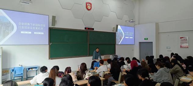 随后,杨立经理将话题转向学生们的就业规划。他强调,了解国际贸易的最新动态对于财经类专业的学生尤为重要,因为这将直接影响他们未来的就业方向和职业发展。他提出了一系列实用的建议,包括如何提升跨文化沟通能力、如何掌握国际贸易相关法规、如何培养市场分析和风险评估的能力等。