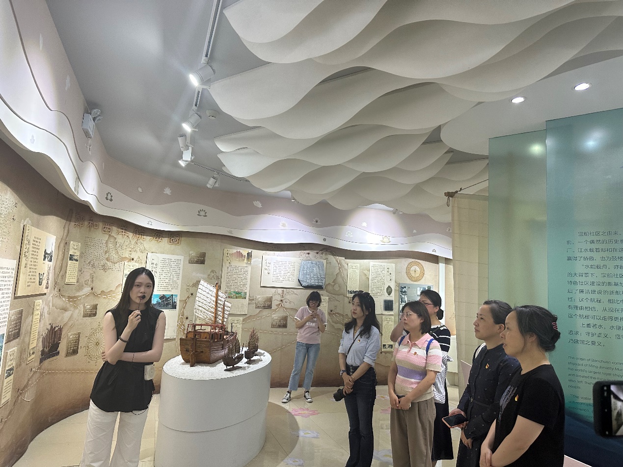 相传600多年前,七下西洋的郑和为了能造出可以在大海上抵御惊涛骇浪的“宝船”,用烧毁一条船的代价,查验工匠们在使用铁钉时有没有贪腐现象——时代更迭,廉洁根植人心,廉洁文化已经成为中华优秀传统文化的重要组成部分。南京市鼓楼区江东街道宝船社区党委依托宝船厂遗址公园深厚的人文历史底蕴,打造全国首家社区廉洁文化体验馆,大力开展廉洁文化宣传教育,党员们在工作人员的引导下,逐一参观了展区的各个板块。