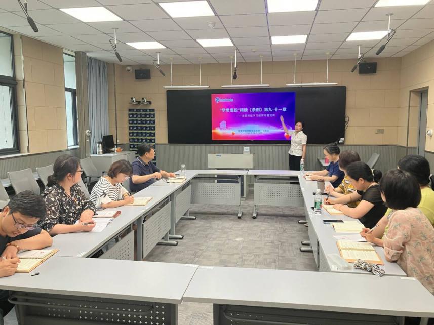根据学校党纪学习教育要求和支部学习计划,6月28日下午,江南平台_江南(中国)党总支第一党支部全体党员集中于厚生楼303教室,支部书记滕静涛为大家讲党纪学习教育专题党课。党课围绕“学思悟践”精读《中国共产党纪律处分条例》,聚焦第九、十、十一章新增、调整、充实、完善内容。