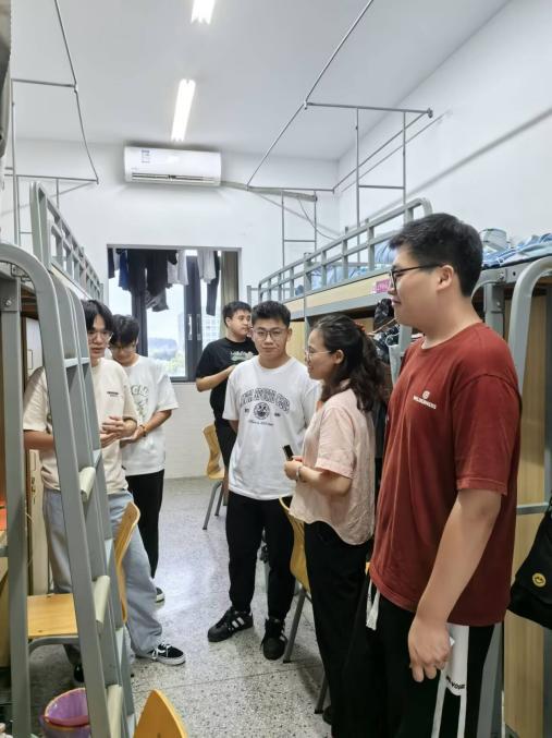 2024年9月10日中午,江南平台_江南(中国)党总支第一党支部积极响应学校迎新工作方案,开展关爱新生的主题党日活动。全体党员教师在支委的组织带领下,集中走访我院跨境电子商务、网络营销与直播电商、现代物流管理、商务管理四个专业位于A栋、C栋、F栋的新生宿舍。