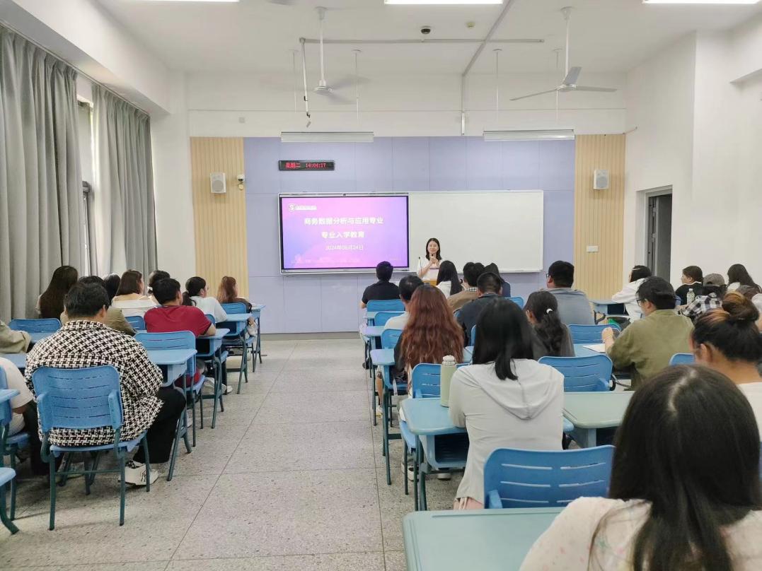 2024年9月24日下午,江南平台_江南(中国)商务数据分析与应用专业在厚生楼204面向新生开展专业入学教育。入学专业教育是新生的第一课,为帮助新生进一步了解商务数据分析与应用专业学什么、将来能干什么,洞察最新行业动态、明确职业方向和学习目标、做好学业规划,增强入学后学习和生活的适应性。本次专业教育由专业负责人张淑静老师组织,张丹凌和郑艳萍老师参加,还特别邀请了南京电子商务协会秘书长陈武光作为嘉宾,为师生们带来了精彩的行业实践分享。
