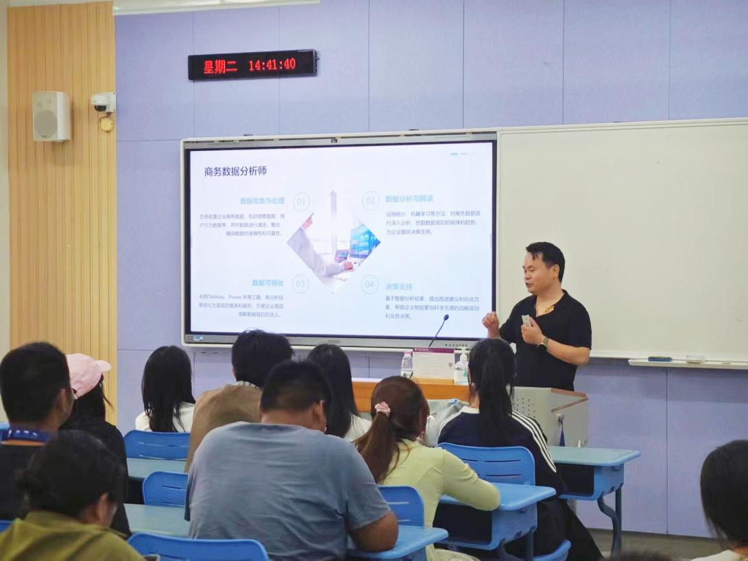 陈秘书长首先就当前电商行业的发展及最新动态进行了深入剖析,让同学们对行业的发展趋势有了更加清晰地认识。随后,他详细阐述了商务数据分析在电商行业实践中的应用场景和作用,以及未来职业岗位对于数据分析能力的迫切需求。陈秘书长的报告不仅拓宽了同学们的视野,也激发了他们对专业学习的热情。
