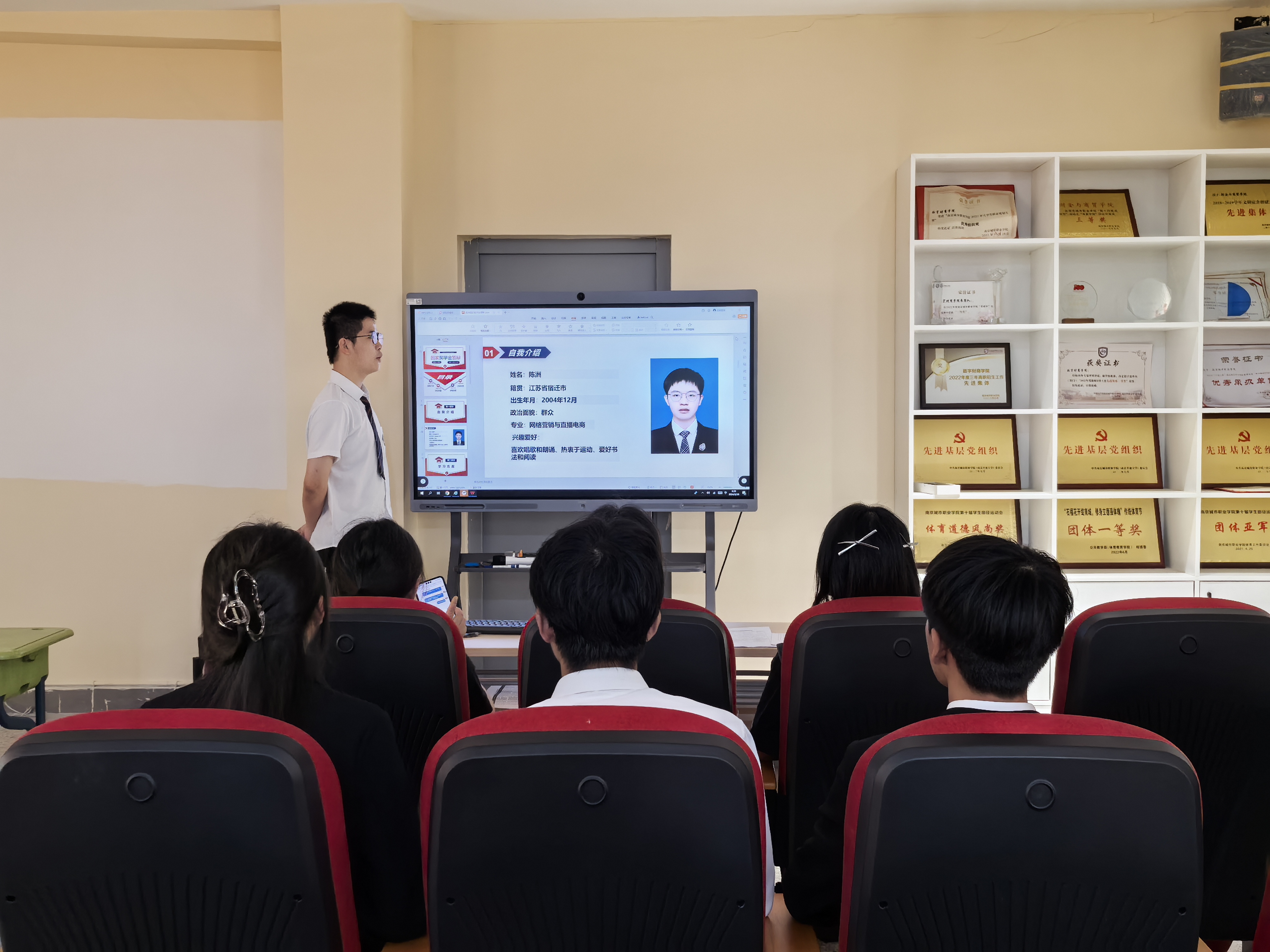 答辩过程中,7名参与答辩的同学通过PPT演讲的形式,分别从思想态度、学业成绩、工作历练、社会实践、创新能力等方面进行了全面而深入地展示。他们中有勇于担当、甘于奉献的新时代青年志愿者,有乘风破浪、坚持不懈的创新创业攀登者,也有刻苦钻研、精益求精的职业技能大赛获奖者,每位同学凭借矢志不渝的初心、勤勉实干的态度,让绚丽的青春绽放出饱满的色彩。同学们的出色表现和全力以赴赢得了在场师生的阵阵掌声。