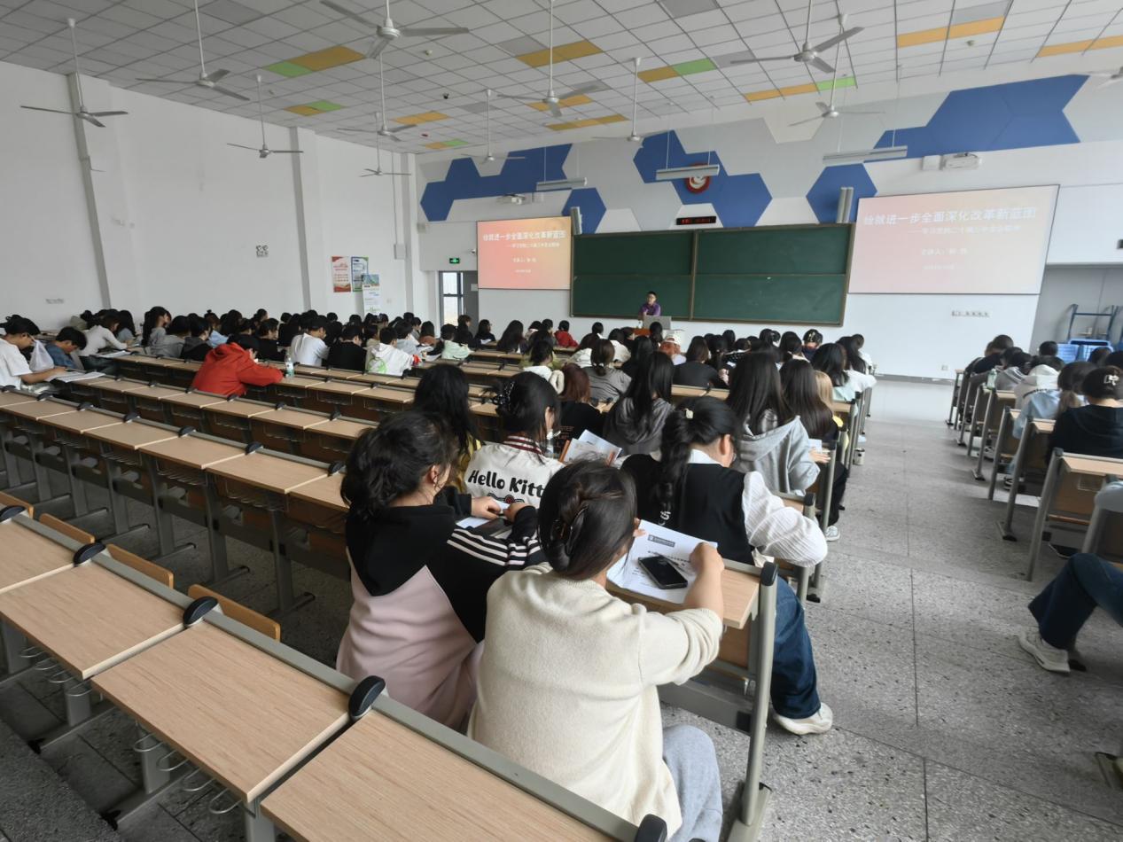 10月15日中午,孙伟老师在厚生楼101教室为入党积极分子们带来了一堂深刻而精彩的党课。本次党课以“绘就进一步全面深化改革新蓝图——学习党的二十届三中全会精神”为主题。