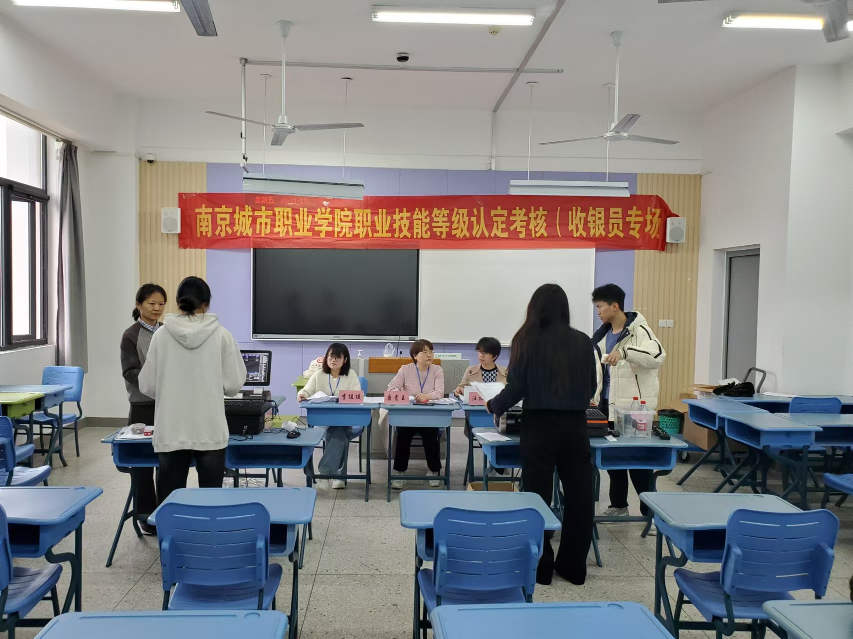 收银员地考核分为理论测试和技能实操两个阶段,鉴于参与考核地学生人数众多,整个考核过程历时2天,累计近10个小时。在考核期间,江南平台_江南(中国)领导和职业技能等级认定中心地沈炜老师每天都亲临溧水校区地考核现场,密切关注考核进展。