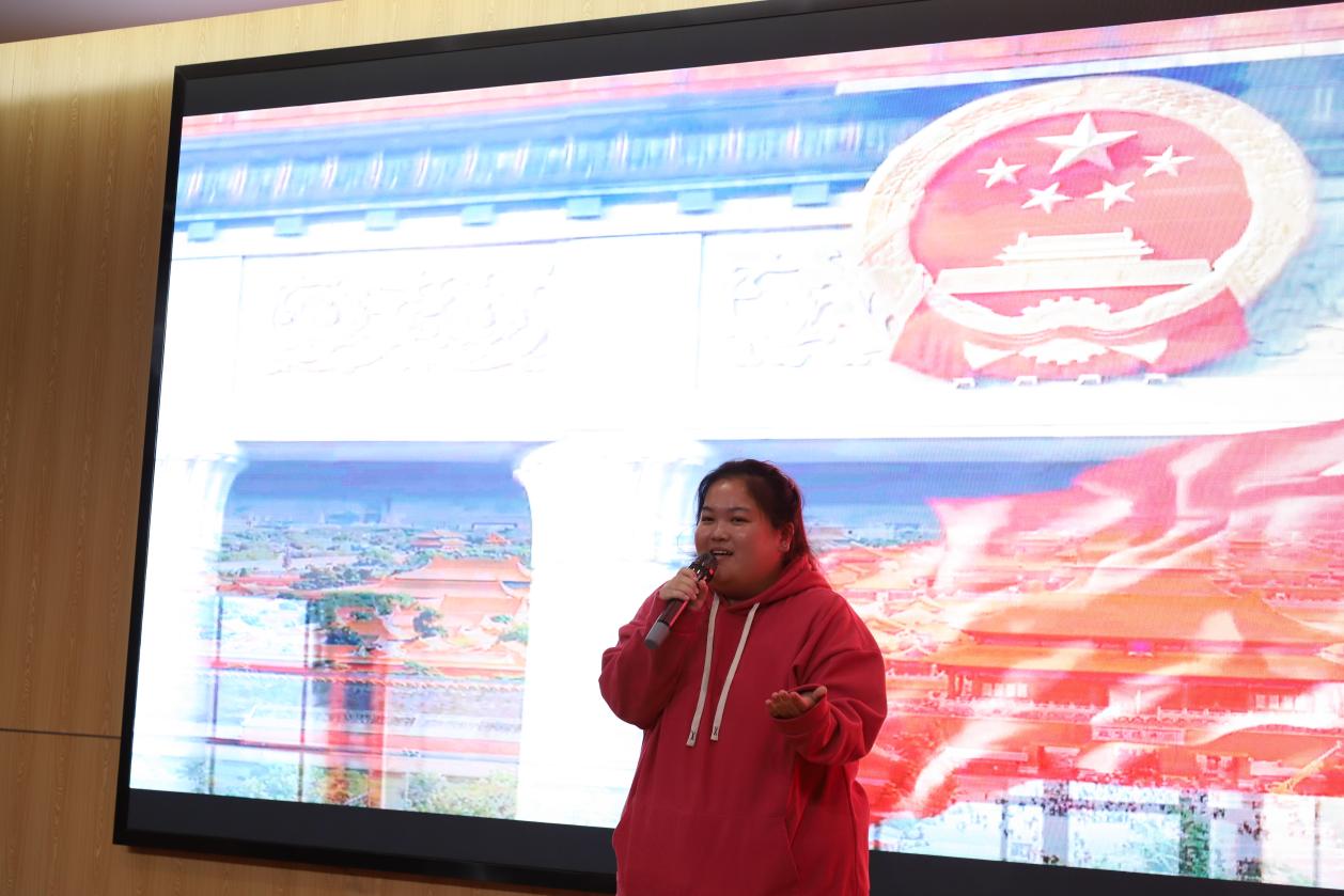 在众多优秀的表现中,李佳芮同学的朗诵尤为突出。她不仅熟练地脱稿朗诵,更以声情并茂的演绎,将朗诵稿中的爱国情怀展现得淋漓尽致。评委老师们专注聆听,认真评判,从朗诵内容、表达技巧、情感传递、仪态仪表等多个方面进行综合考量,确保比赛结果公平公正。比赛结束后,所有参赛者与评委老师合影留念,共同记录下这一难忘的时刻。