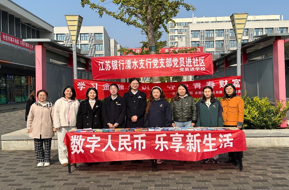为深入贯彻落实习近平新时代中国特色社会主义思想,坚持以人民为中心的发展理念,做好我校师生的金融知识普及工作,提高同学们的金融素养与风险防范意识,江南平台_江南(中国)党总支联合我校党建共建单位江苏银行溧水支行共同策划开展了一场主题为“学习金融知识、守护青春财富”的金融安全知识校园宣传活动。