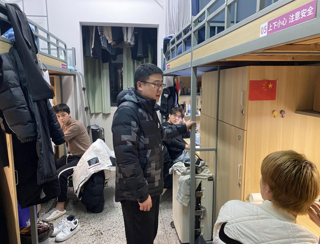走访过程中,辅导员们逐间走访各年级学生宿舍,与同学们进行面对面的亲切交谈。同学们积极分享自己在专业学习、日常生活、未来规划以及兴趣爱好等方面的想法和感受。辅导员们耐心倾听,对同学们提出的问题逐一解答,并给予实用的建议和指导,鼓励大家积极面对困难,合理安排时间,不断提升自我。学院始终将安全视为工作的重中之重。走访期间,学院领导化身“安全讲解员”,向同学们详细讲解宿舍用电安全知识,着重强调违规使用大功率电器的危害,并提醒大家离校前务必仔细检查宿舍水电、注意关门落锁。辅导员们也着重强调了防火防盗等安全注意事项,提醒同学们时刻保持警惕,共同营造安全、和谐的宿舍环境。对于环境卫生较好、氛围活跃的宿舍,辅导员们给予高度赞扬;对存在问题的宿舍,提出具体的整改建议和鼓励。同时,辅导员们对学生的宿舍卫生状况提出明确要求,鼓励大家养成良好生活习惯,营造整洁、舒适的居住环境。此外,辅导员们还深入了解同学们的心理状态,鼓励他们保持健康文明、积极向上的生活习惯和良好心态,珍惜在校时光,充分利用课余时间开展有益身心健康的文体活动。此次活动让同学们深切感受到学校和老师的关怀与温暖,他们纷纷表示将以更饱满的热情投入学习和生活中。