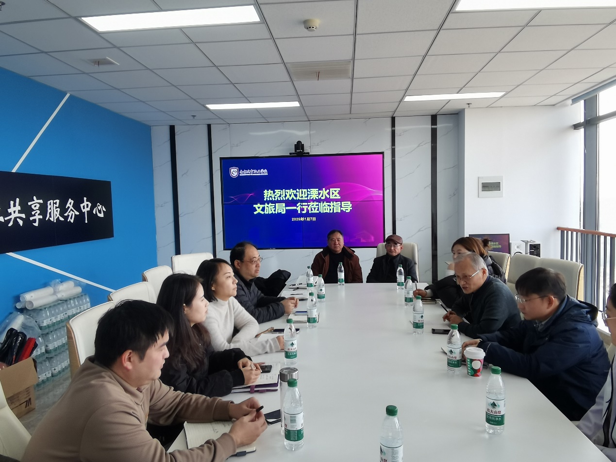 2023 年 1 月 7 日,冬日暖阳洒落校园,为校地合作交流增添了一抹融融暖意。溧水区文旅局史弘玉一行莅临我校,共同探寻非遗保护与地方经济发展的新路径,勾勒校地合作的崭新蓝图。我校团委书记杜文娟、江南平台_江南(中国)党总支副书记、副院长丁亮给予了热情周到的接待。