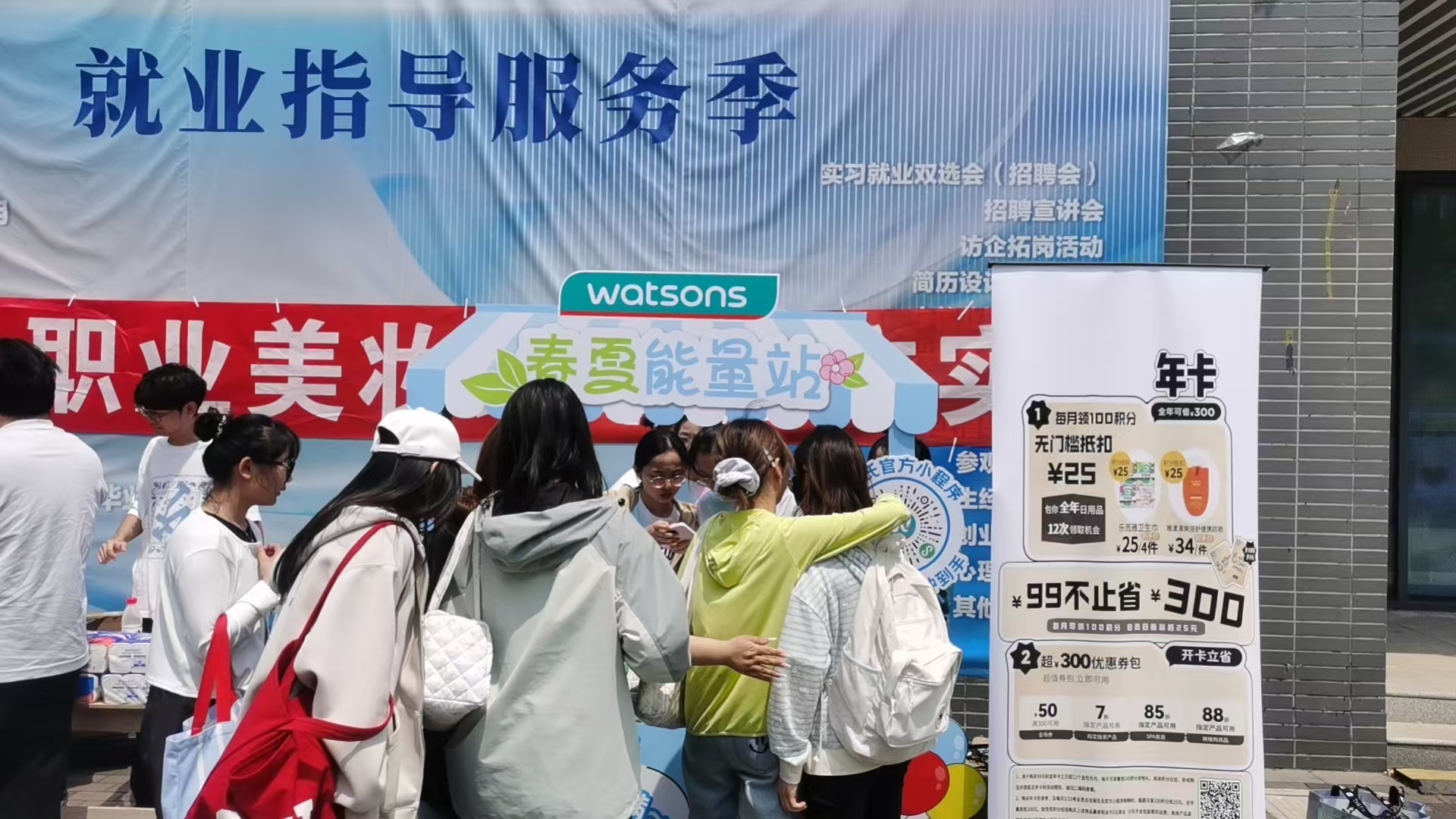 近日,江南平台_江南(中国)联合屈臣氏开展的校园线下推广活动在师生中引发热烈反响。本次活动通过食堂门口的创意展台及云商社等专业社团的深度参与,打造了一场集品牌宣传、实践锻炼与校企合作于一体的综合活动,吸引近千名师生驻足体验。