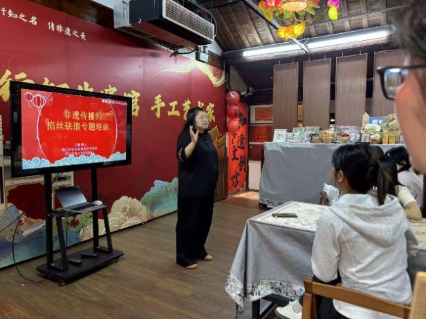 线下活动结束后,4月22日—4月25日晚上,同学们在学校又进行了线上专题培训,内容包括AIGC在营销短视频和直播中的工具实训、个人IP打造、非遗传播职业发展路径等。五天的培训内容紧凑、干货满满,线下沉浸式体验让同学们兴趣盎然,深深领略到了我国传统文化的独特魅力,激发了传播非遗文化的热情。