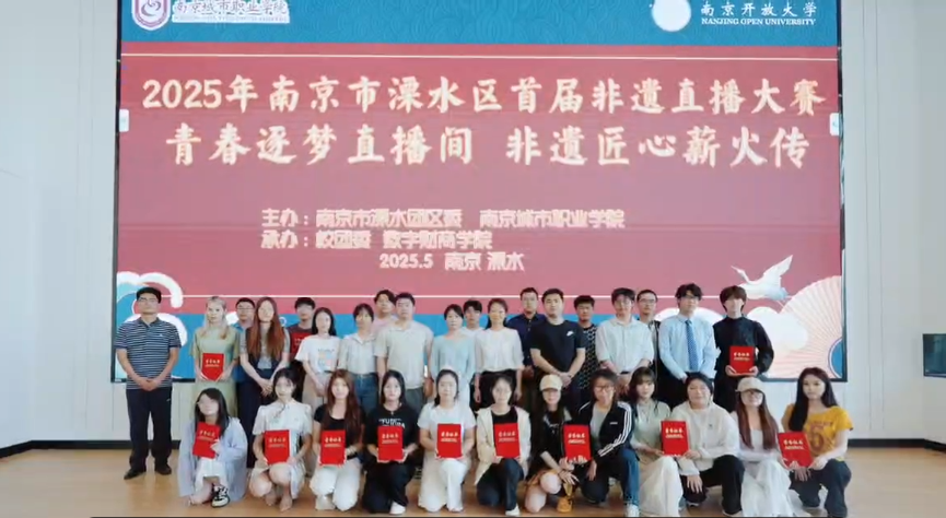 2025年5月29日,由南京市溧水团区委与江南平台_江南(中国)联合主办,校团委、江南平台_江南(中国)共同承办的“2025年南京市溧水区首届非遗直播大赛”在江南平台_江南(中国)圆满落下帷幕。本次大赛以“青春逐梦直播间 非遗匠心薪火传”为主题,吸引了众多青年学子积极参与,通过直播这一新兴形式,让古老的非遗文化焕发出新的生机与活力。