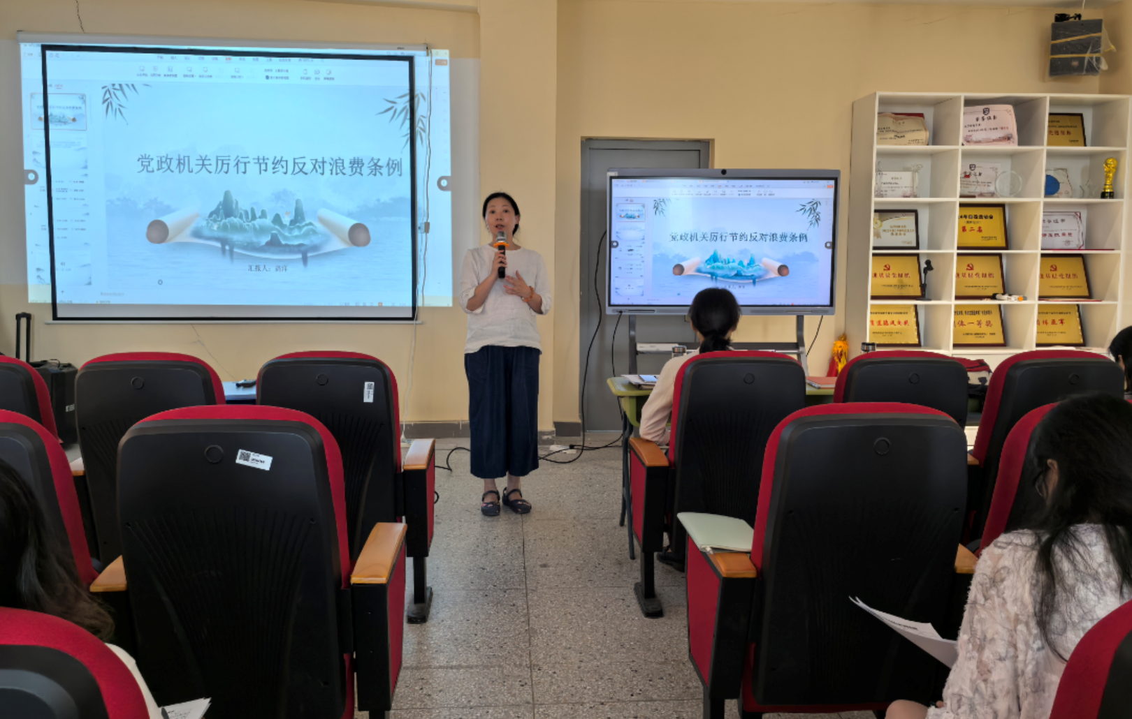 第一项学习内容是《党政机关厉行节约反对浪费条例》专题学习。党总支宣传委员高洋同志担任领学人,带领全体教职工系统学习了《条例》的出台背景、核心要义和具体要求。高洋同志结合高校工作实际,重点解读了《条例》中关于经费管理、资源节约、监督检查等方面的规定,强调了厉行节约、反对浪费不仅是党政机关的基本要求,也是高校作为育人阵地和社会文明窗口应尽的责任与义务。学习过程中,与会教职工就如何在日常教学管理、行政运行、科研活动和学生培养中践行勤俭节约精神展开了热烈讨论。大家一致认为,必须从自身做起,从小事做起,精打细算用好每一分钱、每一度电、每一张纸,将节约理念内化于心、外化于行,共同营造崇尚节俭、反对浪费的校园文化氛围,为建设节约型校园、清廉校园贡献力量。