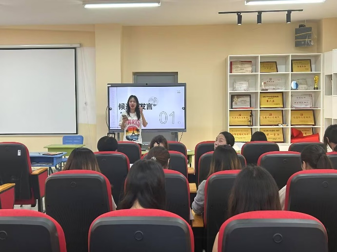 会议开始, 换届大会的竞选环节成为全场焦点。同学们以口头演讲、社团成员投票的形式竞选社团的正副社长职务。4位候选人依次登台,结合自身跨境电商学习实践经验与创新构想,展开精彩角逐。每位竞选人都以翔实的规划、真挚的愿景、饱满的热情和独特的视角,展现出对社团工作的深刻理解和强烈责任感,赢得了现场观众的热烈掌声。